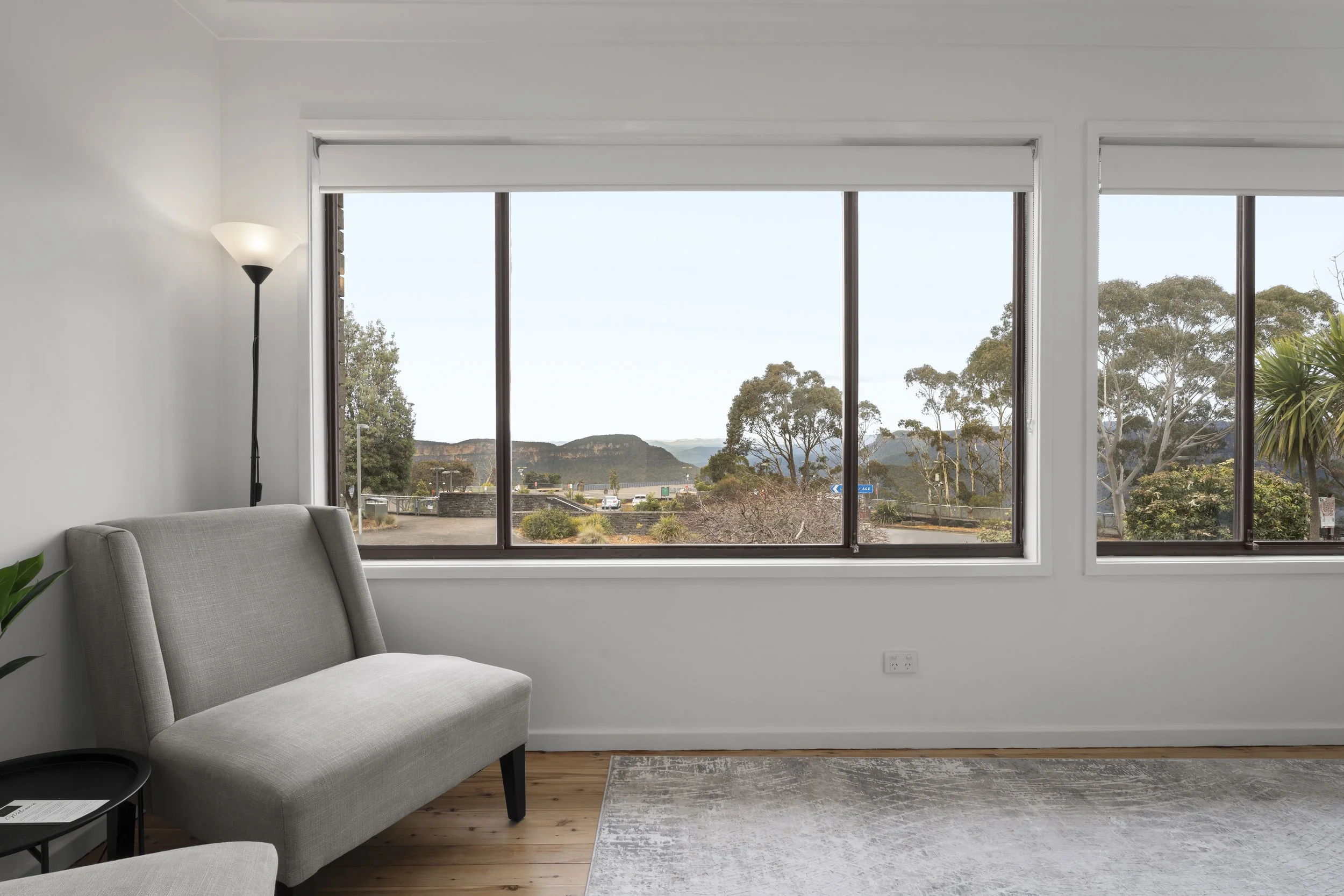 This cozy, contemporary retreat offers light-filled open-plan living, high-end finishes, a sleek gourmet kitchen, plush bedrooms, and the ultimate unwind: an on-site infrared sauna. Wake to breathtaking sunrises over the Three Sisters, stroll moments to the famous lookout, clifftop walks, or Scenic World, then return to your private cliffside haven.